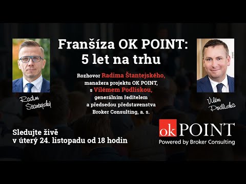 Radim Štantejský, manažer projektu OK Point a obchodní ředitel Broker Consulting, si povídá s Tomášem Reyttem o pěti letech fungování pobočkové sítě OK Point. Společně vzpomenou na jednotlivé milníky, kterými projekt prošel, a také budou diskutovat o nezastupitelné pozici historicky prvního strategického partnera, bez něhož by franšízové pobočky OK Point nevznikly.